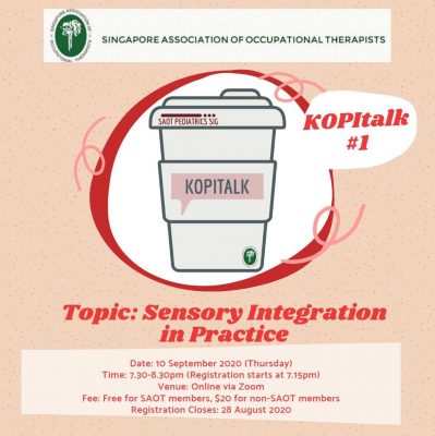 KOPItalk is a new initiative by the Pediatrics Special Interest Group which aims to be an informal platform for OTs to connect, share and discuss topics related to pediatric clinical practice. It also aims to promote a community of idea sharing and allow participants to gain perspectives from OT practitioners in various settings.